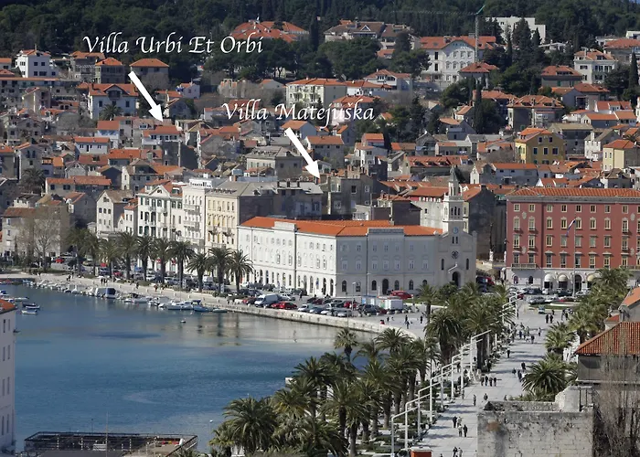 Das Hotel liegt 700 Meter vom Meer in Split entfernt. Nach etwa 9 Gehminuten vom Hotel erreicht man den Strand Matejuska.
